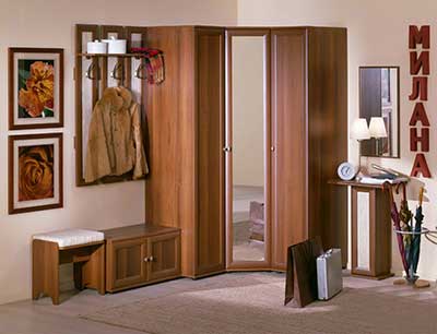 Коллекция мебели МИЛАНА, включающая в себя мебель для гостиной и спальни, теперь дополнена и прихожей. Благодаря разнообразию модулей этой коллекции, Вы имеете возможность составить любую композицию для больших и маленьких квартир - как угловую, так и прямолинейную, выстроив подходящие модули вдоль стены. Особенной прихожую МИЛАНА делают оригинальные декоративные вставки из ткани Хасир на вешалке, консоли, банкетке. Ткань Хасир оказывает благоприятное влияние на тех, кто использует ее в своем быту, создает в доме атмосферу тепла и уюта. Для хранения обуви в прихожей подойдет Тумба 1 со специальным углублением для высоких сапог. В любом месте на комфортном для Вас уровне Вы можете навесить Зеркало навесное 1. Консоль 1 удобна для хранения мелочей и для размещения на ней телефона. Вешалка 1 комплектуется четырьмя крючками, которые можно установить на выбранной Вами высоте.