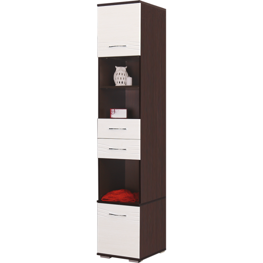 Открытый пенал Лидер 4 - это вместительный и стильный пенал, который впишется в любой интерьер. Пенал включает в себя две закрытые ниши и одну открытую нишу, одну открытую полку, два выдвижных ящика. Пенал выполнен из качественных материалов и подойдет для модульной системы Лидер. -
