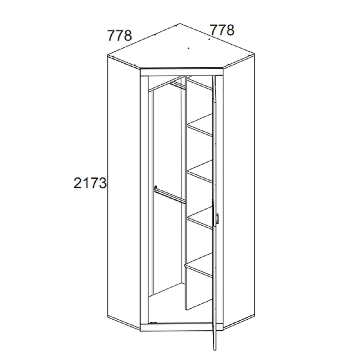 Шкаф для одежды угловой LP Оскар сохранит Ваши вещи и освободит полезное пространство в комнате, а также поможет Вам компактно и функционально обустроить помещение любого размера. Изделие предоставит достаточно места для бережного хранения Вашего гардероба. За распашной дверцей находится широкая штанга для вешалок-плечиков, несколько полок для размещения одежды и три вместительных выдвижных ящика для белья, косметики и аксессуаров.