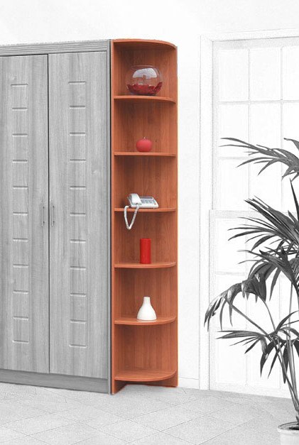 Стеллаж угловой Прихожая №8 оснащен шестью открытыми отделениями для различных вещей - сувениров, книг и фоторамок с фотографиями любимой семьи. Такой стеллаж не только идеально впишется в любой интерьер комнаты, но и поразит Вас своей практичностью и эстетичностью.