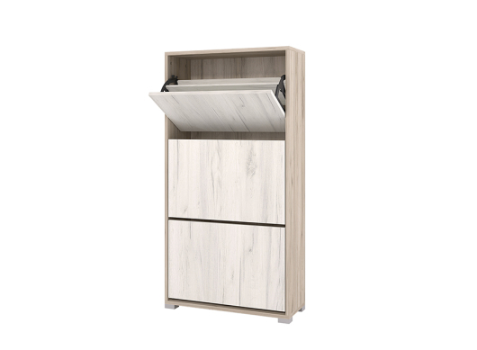 Небольшая, но весьма удобная обувница XL Смарт поможет раз и навсегда забыть о проблеме разбросанной обуви по всей прихожей. Теперь вся обувь семьи будет аккуратно размещаться на полках данной модели. Обувница имеет три отсека с откидными дверцами, на которых находятся специальные отделения, способные вместить до 12 пар обуви. Сверху вы можете красиво расположить декоративные украшения, обувную косметику и аксессуары.