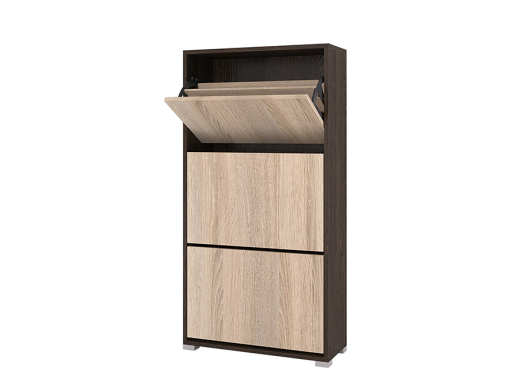 Небольшая, но весьма удобная обувница XL Танго поможет раз и навсегда забыть о проблеме разбросанной обуви по всей прихожей. Теперь вся обувь семьи будет аккуратно размещаться на полках данной модели. Обувница имеет три отсека с откидными дверцами, на которых находятся специальные отделения, способные вместить до 12 пар обуви. Сверху вы можете красиво расположить декоративные украшения, обувную косметику и аксессуары.