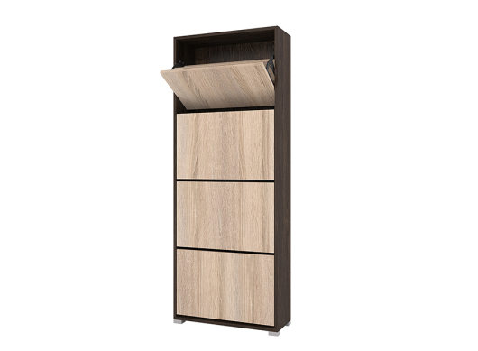 Небольшая, но весьма удобная обувница XXL Танго поможет раз и навсегда забыть о проблеме разбросанной обуви по всей прихожей. Теперь вся обувь семьи будет аккуратно размещаться на полках данной модели. Обувница имеет четыре отсека с откидными дверцами, на которых находятся специальные отделения, способные вместить до 16 пар обуви. Сверху вы можете красиво расположить декоративные украшения, обувную косметику и аксессуары.