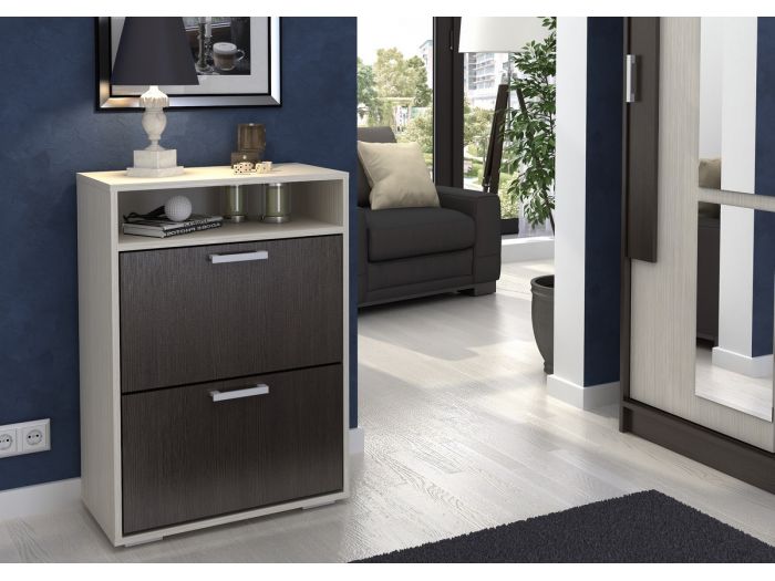 Обувница Дели 1 станет неотъемлемой частью уютной и достаточно приветливой прихожей. Столь компактное изделие позволит раз и навсегда забыть о проблеме разбросанной обуви по коридору. Обувница оснащена двумя откидными дверцами со специальными отсеками для аккуратного хранения обуви всей семьи. Открытая небольшая ниша пригодится для размещения обувной косметики и рожка для легкого надевания. Обувница Дели 1 изготовлена из высококачественных материалов и фурнитуры, что позволит гарнитуру служить вам долгие годы. -