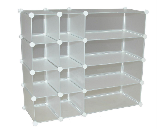 Изделие может смело похвастаться беспрецедентной функциональностью. Модель состоит из двенадцати автономных отделений, разделенных перегородками, поэтому вместит огромное количество обуви. Треть полок имеет увеличенную ширину, поэтому на них уместно поставить сапоги с высоким голенищем или обувь большого размера. Найдется место и для средств по уходу и аксессуаров.