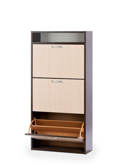 Шкаф оборудован тремя откидными секциями, рассчитанными на 12 пар обуви.
