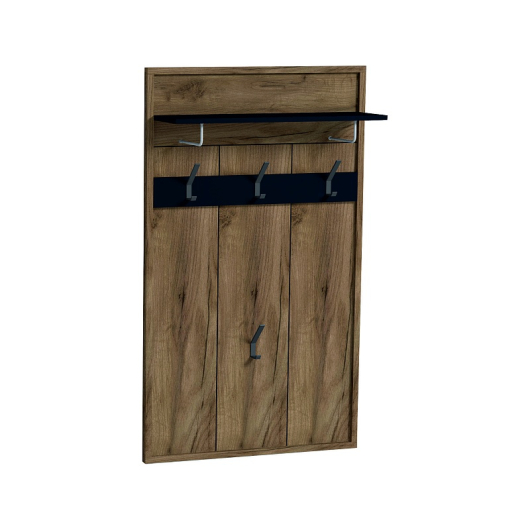 Вешалка Nature 76 станет прекрасным дополнением для создания уютной и приветливой атмосферы в прихожей. Изделие оснащено крепкими металлическими крючками, которые выдерживают нагрузку до 5 кг. Антресольная полка предназначена для головных уборов.
