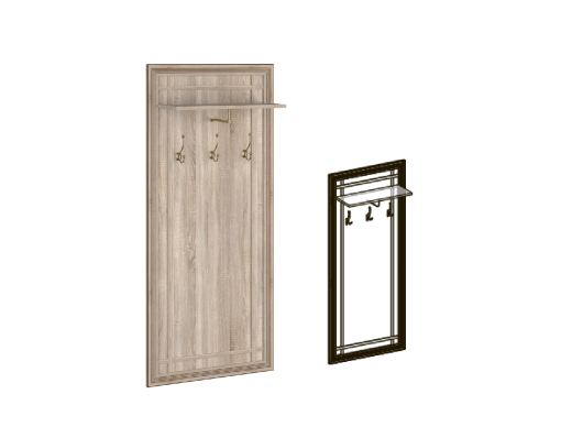 Панель вешалки Бруно станет незаменимым элементом в вашей прихожей. Три крючка и штанга для вешалок-плечиков предназначены для размещения верхней одежды, зонтов, шарфов и небольших сумок. Антресольная полка пригодится для хранения различных сезонных головных уборов и других аксессуаров.