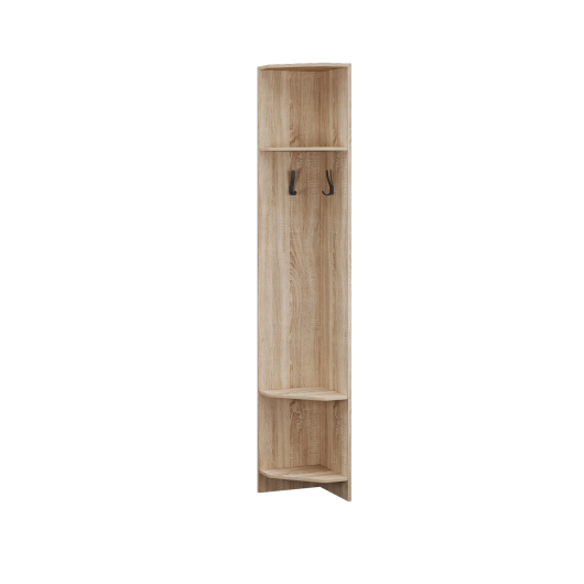 Угловое завершение-2 Денвер станет незаменимым элементом для обустройства уютной и достаточной приветливой прихожей. Два крючка созданы для аккуратного размещения верхней одежды, а антресольная полка - для головных уборов и шарфов. Нижние полки можно использовать в качестве подставки для сумки или обуви.