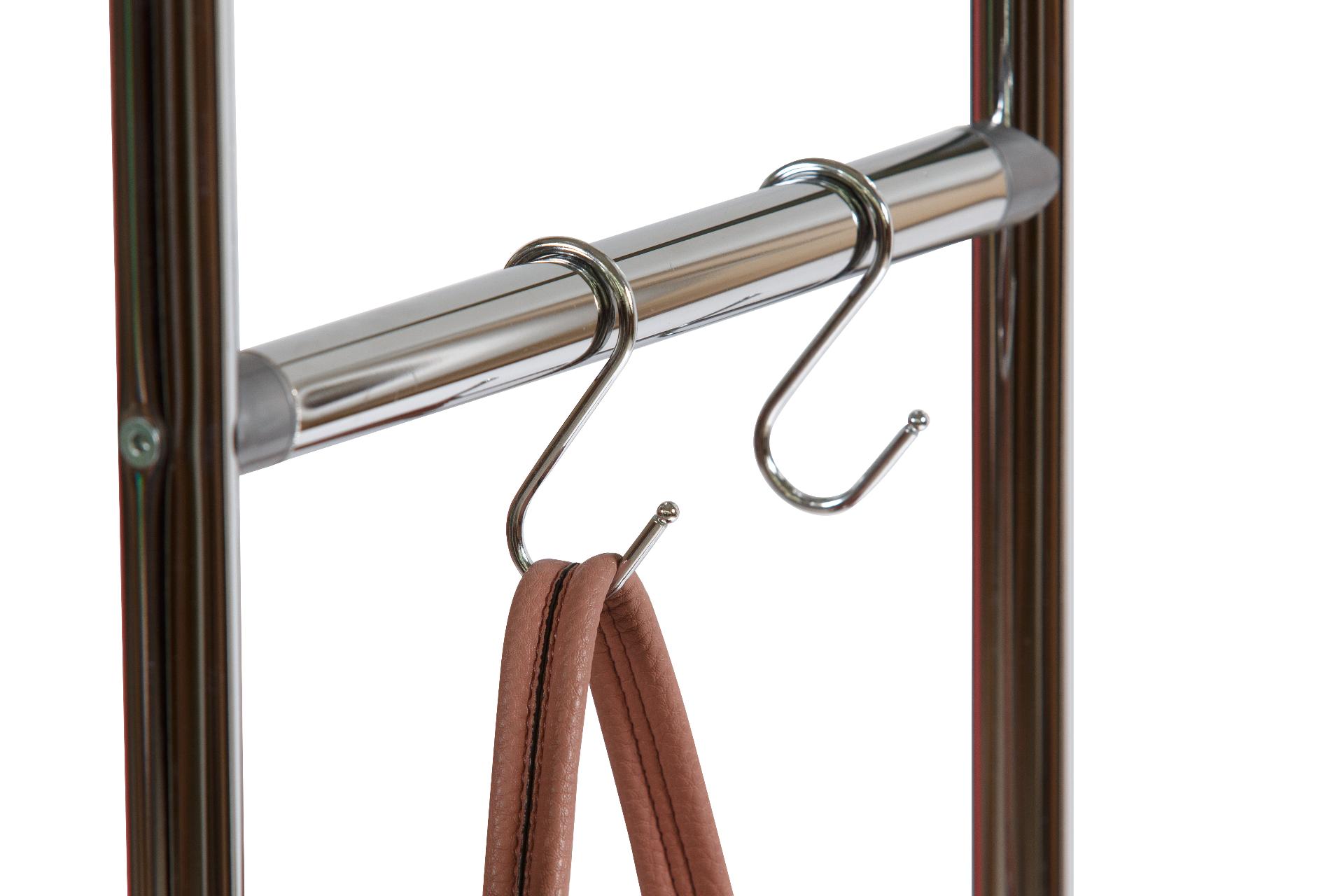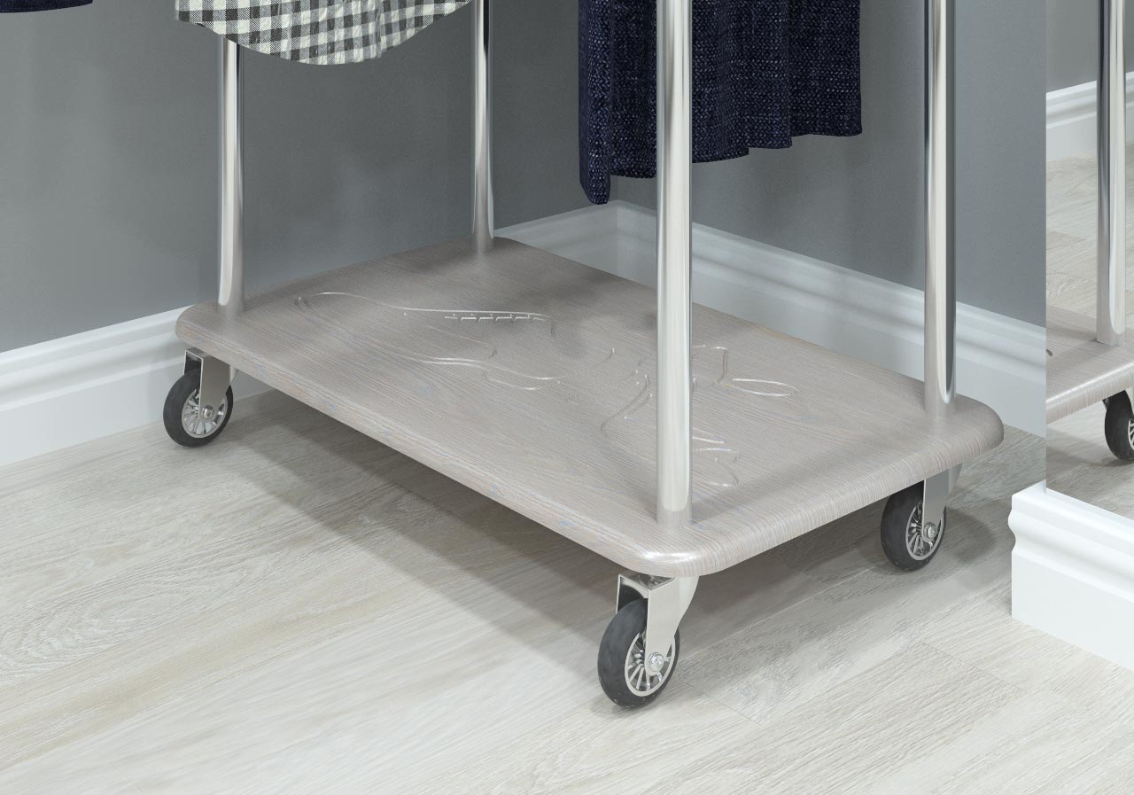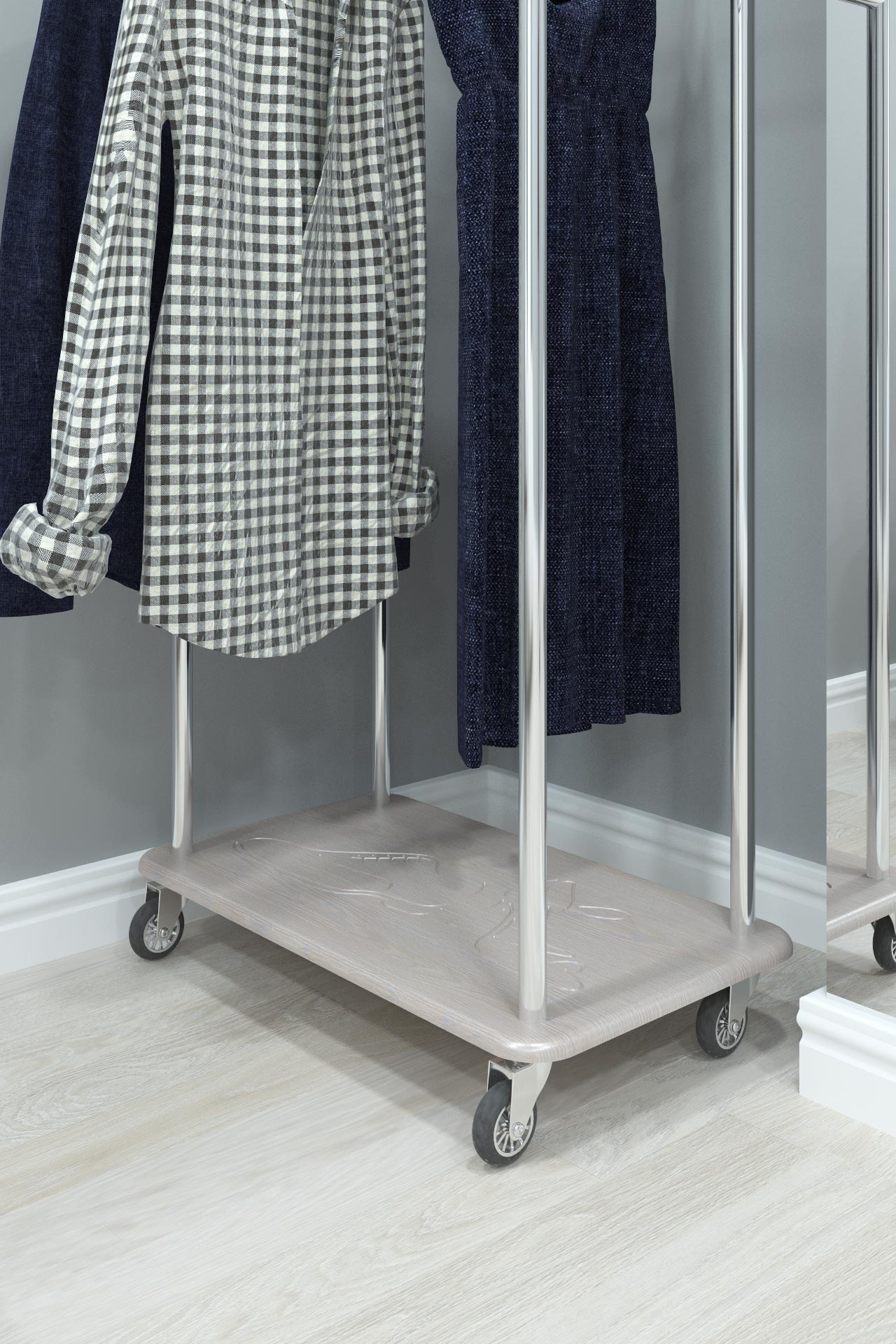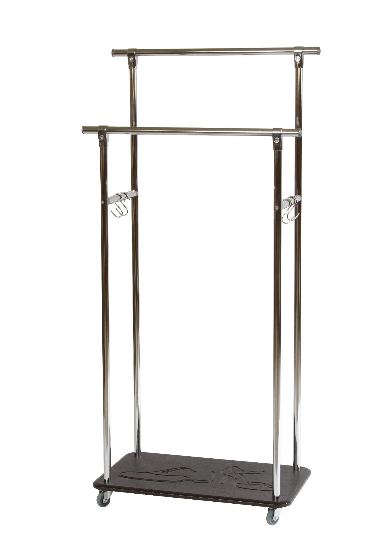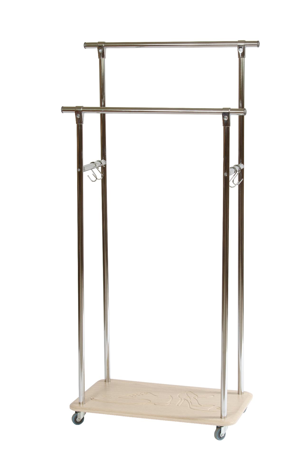 Вешалка гардеробная Кейп - это незаменимый элемент декора для обустройства гардеробной зоны. Функционал вешалки включает в себя 2 планки с крючками для размещения одежды, основание для обуви на прочных, бесшумных колесах с мягким ходом. Для придания эстетики основание вешалки выполнено с элементами фрезеровки.