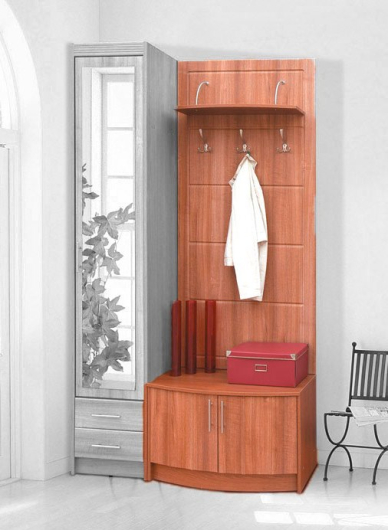 Вешалка с тумбой Прихожая №8 оснащена тремя крючками для верхней одежды и полку над ними для головных уборов. Снизу, за двумя дверцами расположено пространство для различных вещей - например, для обуви. Такая вешалка не только идеально впишется в любой интерьер прихожей, но и поразит Вас своей практичностью и эстетичностью.