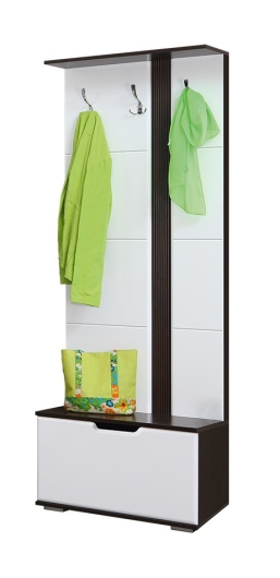 Размеры: Ш700 х Г420 х В2100 мм Материалы: ЛДСП, МДФ Вешалка Стелла 2 включает в себя три крючка для верхней одежды, одну закрытую нишу. Модель подходит для любого интерьера и подойдет для модульной системы Стелла.