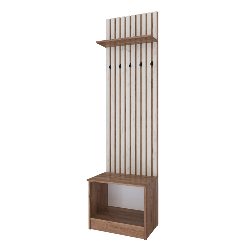 Тумба с вешалкой Кано 600 КПТВ-1 Дуб Крафт белый/Дуб Крафт золотой стильное и грамотное решение для вашего дома. Модный дизайн и элегантная отделка создадут комфортный дизайн в прихожей.