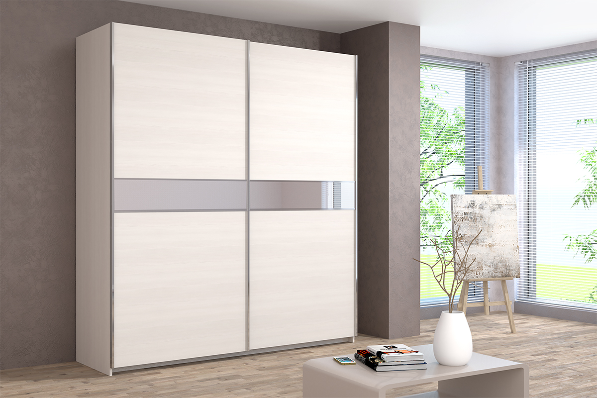 Шкаф-купе 2-х дверный Иннэс 5 Ф4 подойдет тем, кто ищет вместительный шкаф-купе без излишеств. За двумя раздвижными дверьми справа находятся две полки и штанга для одежды, а слева - отделение с пятью полками, которые пригодятся для размещения другой сложенной одежды, белья, всевозможных аксессуаров и коробок с обувью. -