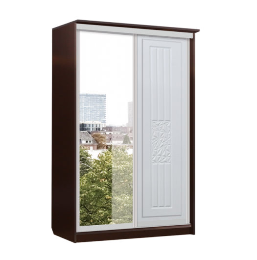 Шкаф купе подойдет для модульной системы Атлантида и поможет разместить вещи. В шкафу есть одно большое зеркало, платяное отделение со штангой для хранения вещей на вешалках и полкой, один бельевой шкаф с четырьмя полками и двумя выдвижными ящиками. Фасад украшен резьбой. -