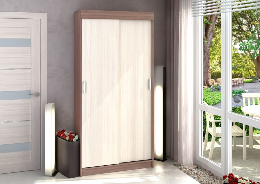 Вместительный современный шкаф-купе Евро подойдет для любого интерьера. Он понравится тем, кто любит качественную, изящную мебель. В шкафу имеются штанга и полки для вещей. -