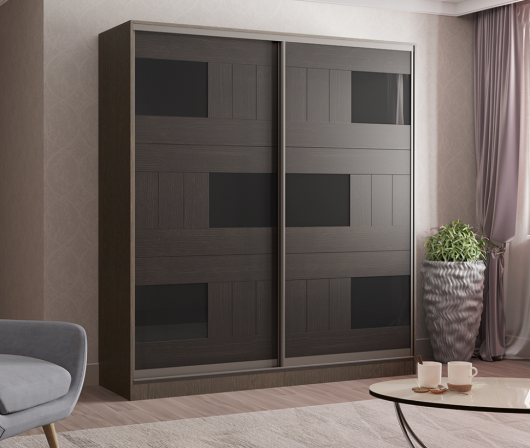 Шкаф-купе Лотос-2 станет гармоничным дополнением интерьера любой комнаты. За двумя раздвижными дверьми находится достаточно полок для хранения сложенной одежды, постельного и нижнего белья, разнообразных аксессуаров и коробок с обувью. Штанги для вешалок-плечиков расположены на разной высоте для большего удобства. Сборка корпуса является универсальной, что позволяет вам собирать наполнение шкафа в зеркальной симметрии.