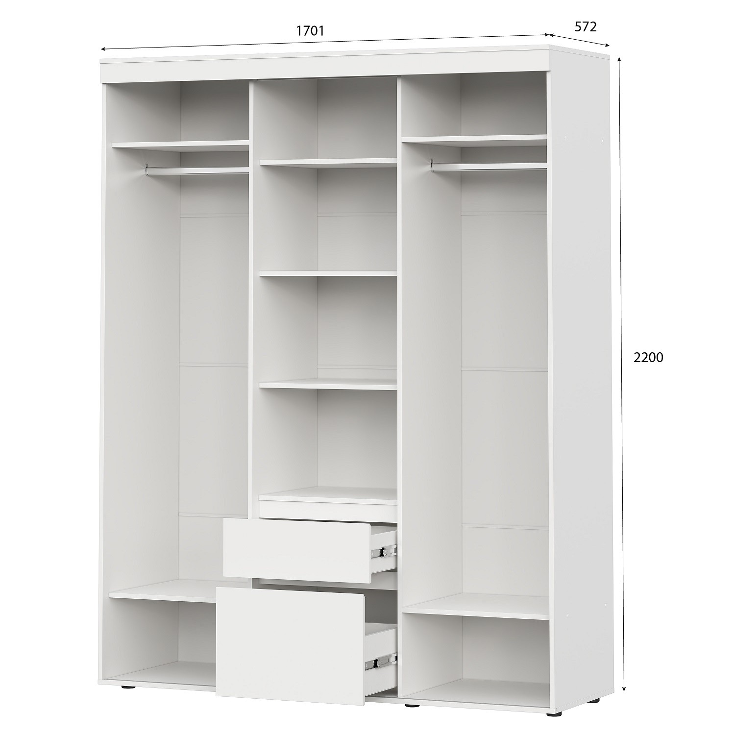 Размеры: Ш1701 х Г572 х В2200 мм