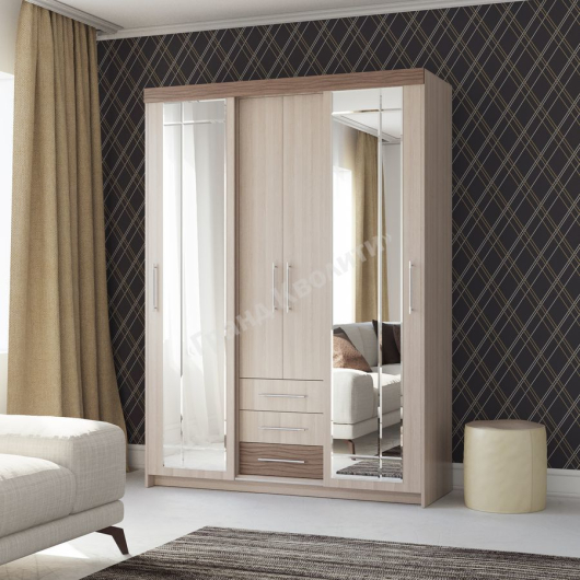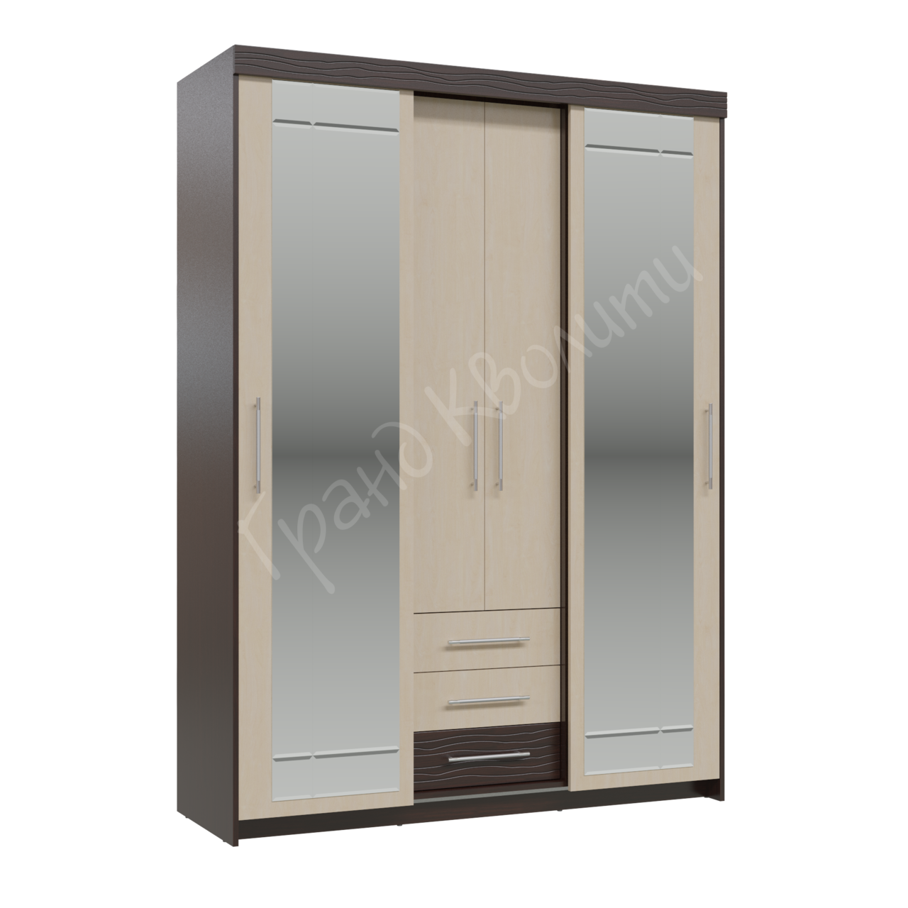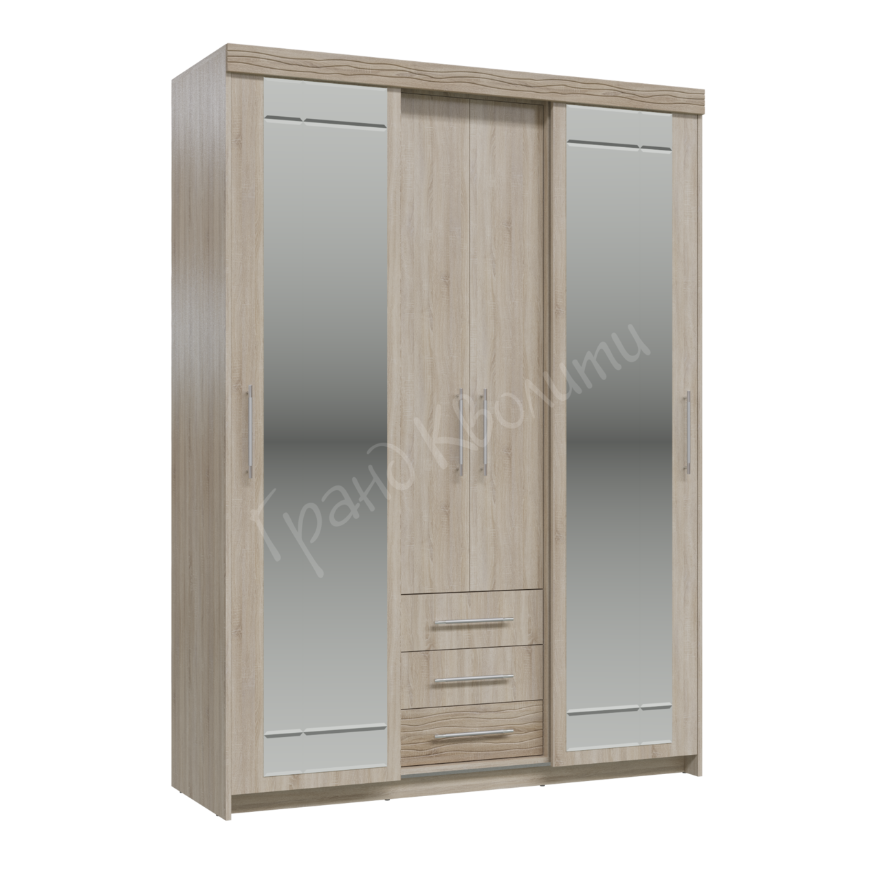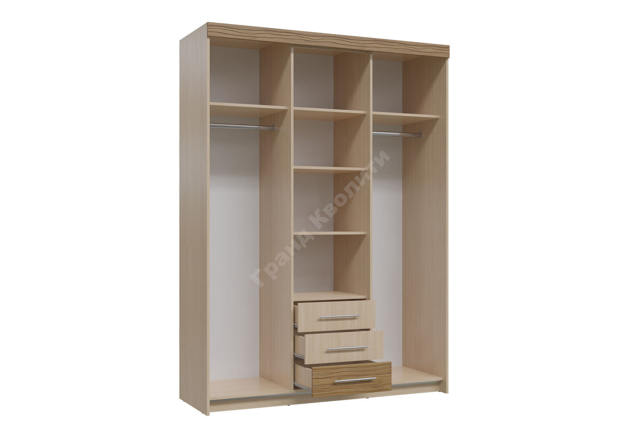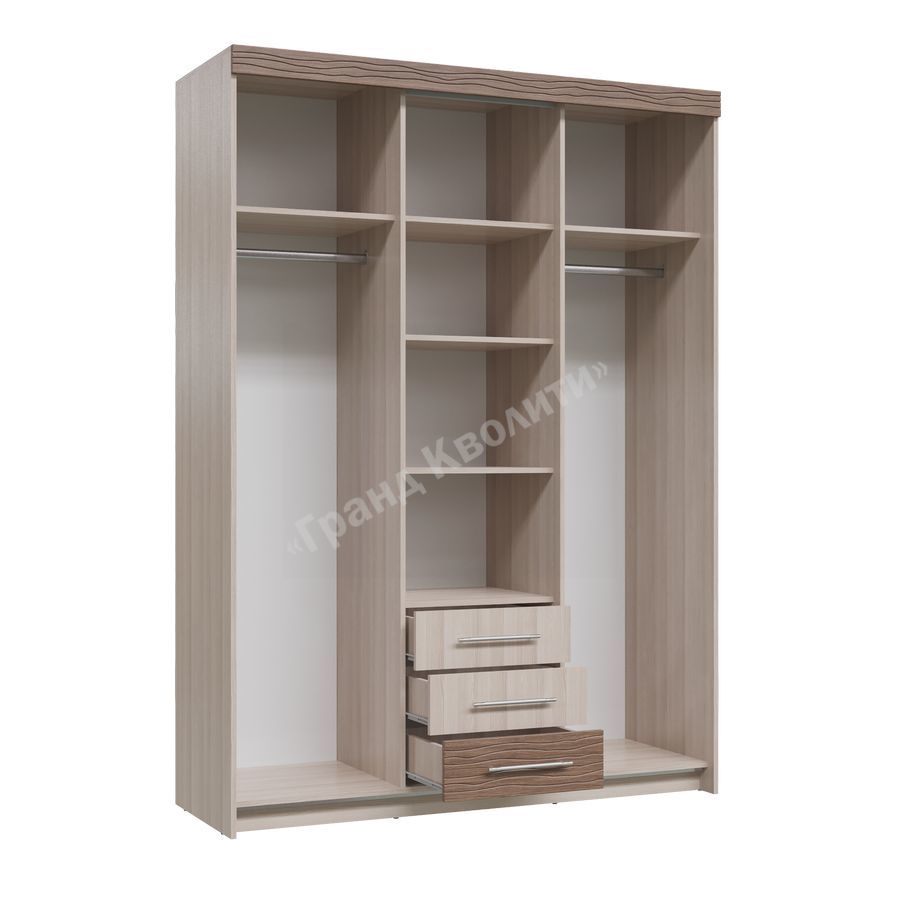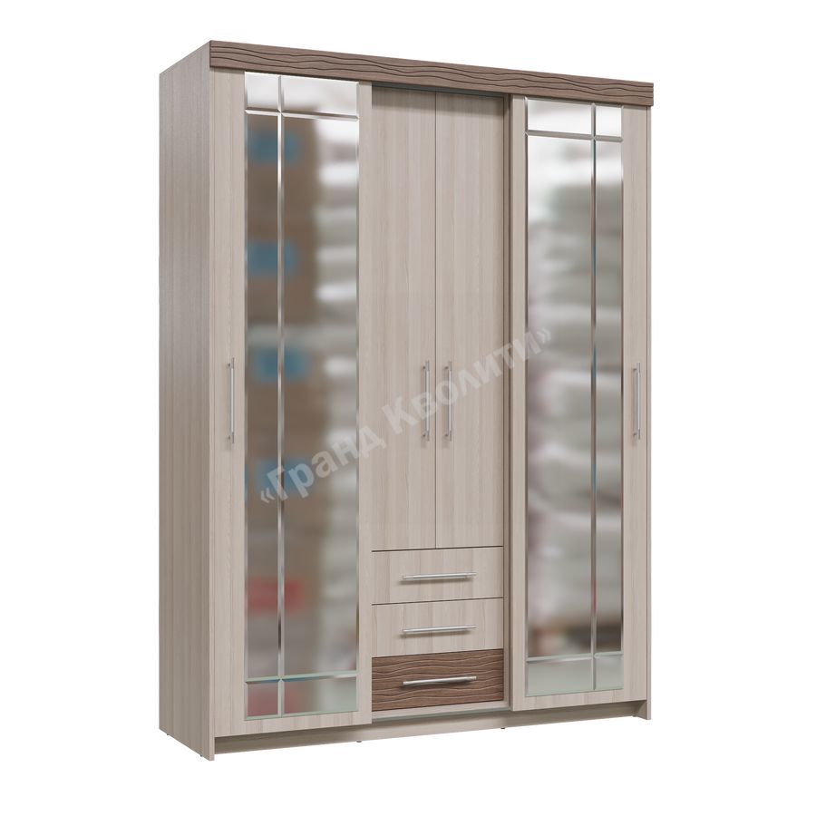 Шкаф-купе Олимп 4-4007 это комбинированный шкаф. Фабрика Гранд Кволити решила совместить 2 вида шкафов, купе и распашной. Полки, штанга и ящики делают шкаф-купе Олимп 4-4007 полноценным гардеробом.
