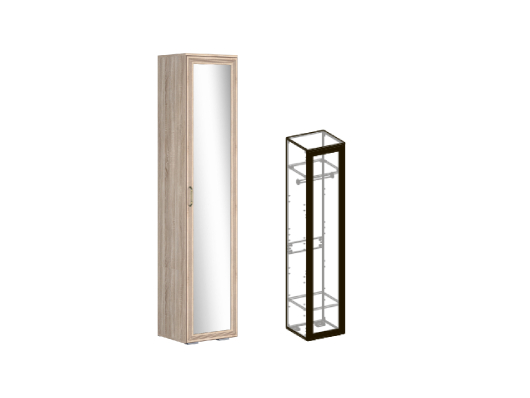 Пенал зеркальный 540 Бруно прекрасно впишется в любой интерьер комнаты. Зеркало во всю высоту пенала понравится абсолютно всем, а также пригодится во время подбора удачных нарядов. За распашной дверью находится штанга для вешалок-плечиков с безупречно выглаженной одеждой, деловыми костюмами, красивыми платьями и верхней одеждой. Антресольная и нижняя полки пригодятся для различных аксессуаров и коробок с обувью.