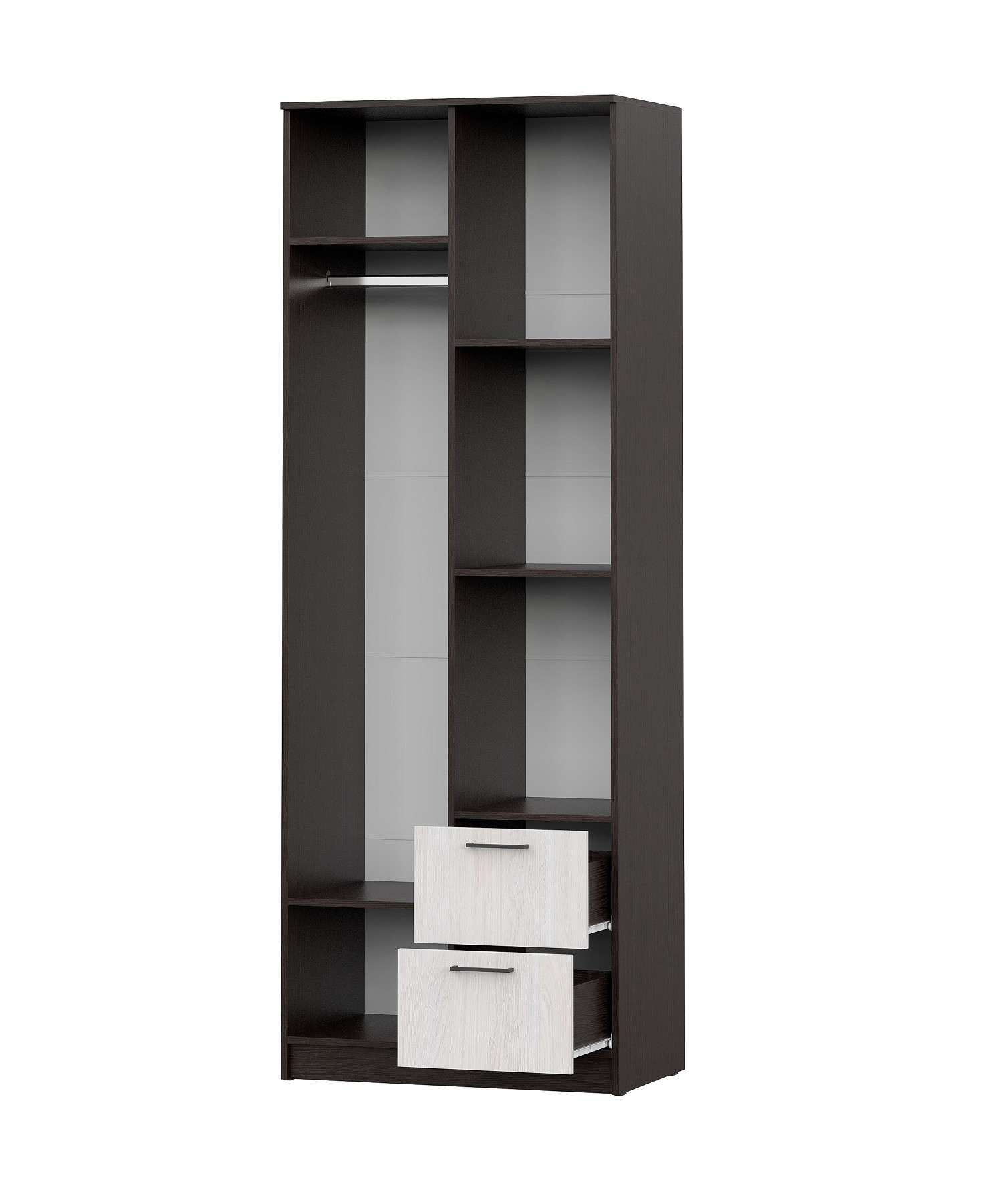Шкаф двухстворчатый для одежды и белья Виста 1 небольшой и практичный. Совмещает в себе вешалку для одежды, полки для белья и ящики для мелочей. -