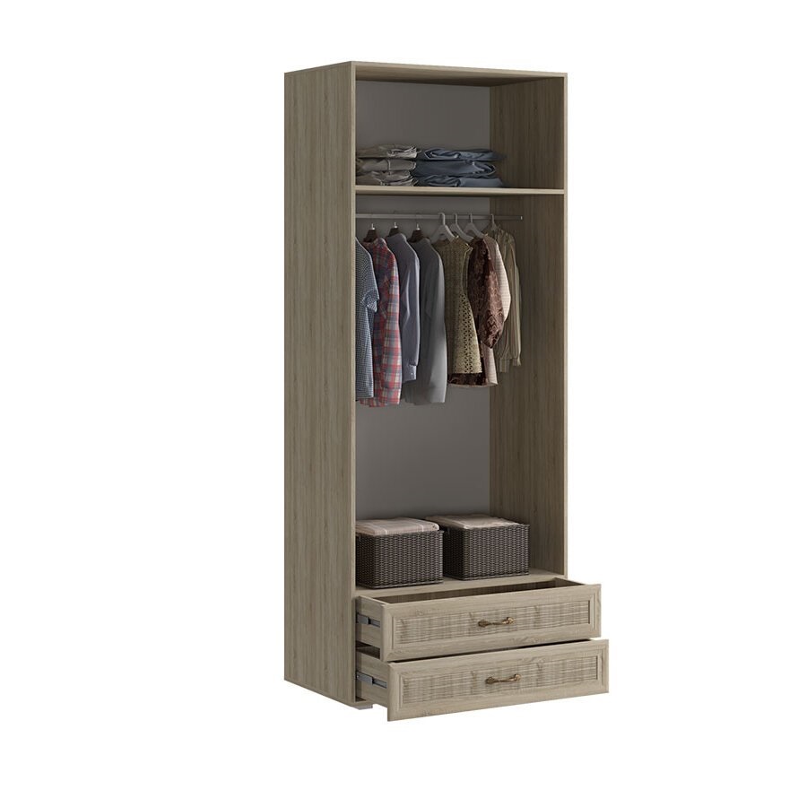Шкаф многоцелевой 2-х створчатый Инесса ИН-113 станет гармоничным дополнением общего интерьера любой комнаты. За распашными дверьми находится широкая штанга для вешалок-плечиков, а антресольная и два выдвижных ящика пригодятся для сложенной одежды, белья, обуви и различных аксессуаров.