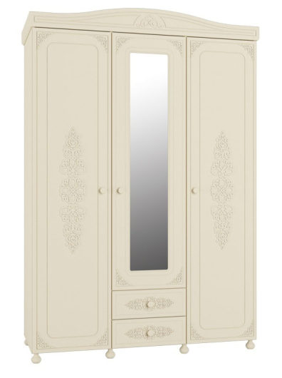 Шкаф 3х дверный с зеркалом Ассоль Плюс АС-27 универсальный шкаф в любую комнату. Шкаф в классическом стиле. Вместительный шкаф для одежды с двумя ящиками. Фасады украшены декоративными элементами и снабжены ручками. На центральной двери зеркало.