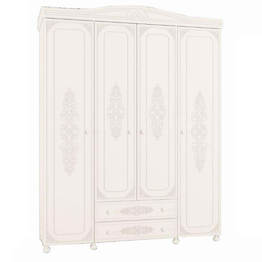Шкаф 4-х дверный Ассоль АС-28 полноценный шкаф для всей семьи. Внутри есть и полки, и штанга. Шкаф имеет 2 выдвижных ящика, которые заменят комод. Шкаф 4-х дверный Ассоль АС-28 выполнен в великолепном белом цвете. Резные фасады сделают интерьер богатым и роскошным.