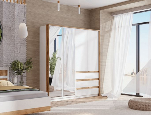 Шкаф Дубай №11 в сочетании древесного цвета с белым создаёт стильный и уютный интерьер. Это сочетание пользуется популярностью благодаря своей универсальности и способности гармонично вписываться в различные стили оформления. Шкаф 4-х дверный Дубай имеет очень комфортное наполнение.