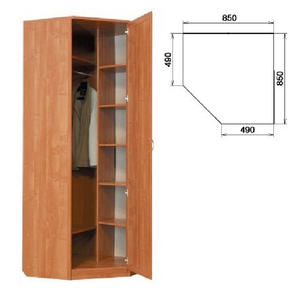 Шкаф угловой Гарун 400 станет отличным дополнением для обустройства уютной комнаты. За распашной дверью находится вместительное и достаточно продуманное наполнение, которое позволит разместить ваш гардероб. Широкая штанга создана для вешалок-плечиков с верхней одеждой, красивыми платьями, деловыми костюмами, выглаженными рубашками, элегантными блузами и строгими брюками. Множество полок пригодятся для белья, коробок с обувью и разнообразных аксессуаров.