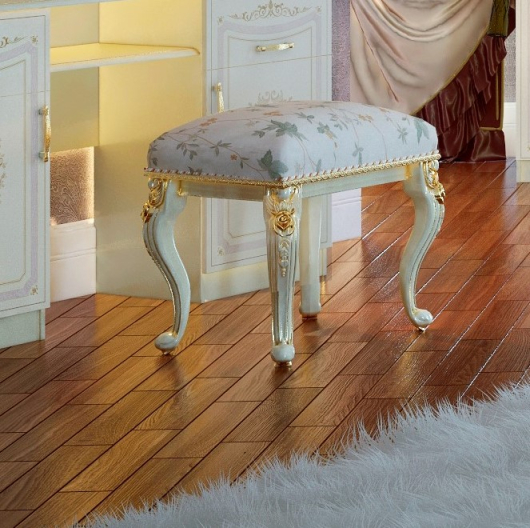 Изысканный пуф СГ-09 Грация станет прекрасным местом отдыха для дам с утончённым вкусом. Мягкий пуфик с нарядными фигурными ножками с нежными розочками и позолотой - именно то, что вы так давно искали. Мебель Грация искусно обогащена креативными штрихами винтажного, рельефного декора «с позолотой»