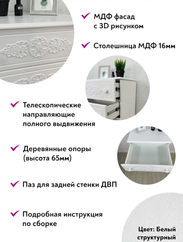 Комод Ассоль АС-62 - это стильный и современный предмет мебели, который может стать акцентом в интерьере. Фасады с 3Д фрезеровкой придают комоду Ассоль АС-62 особый шарм. -