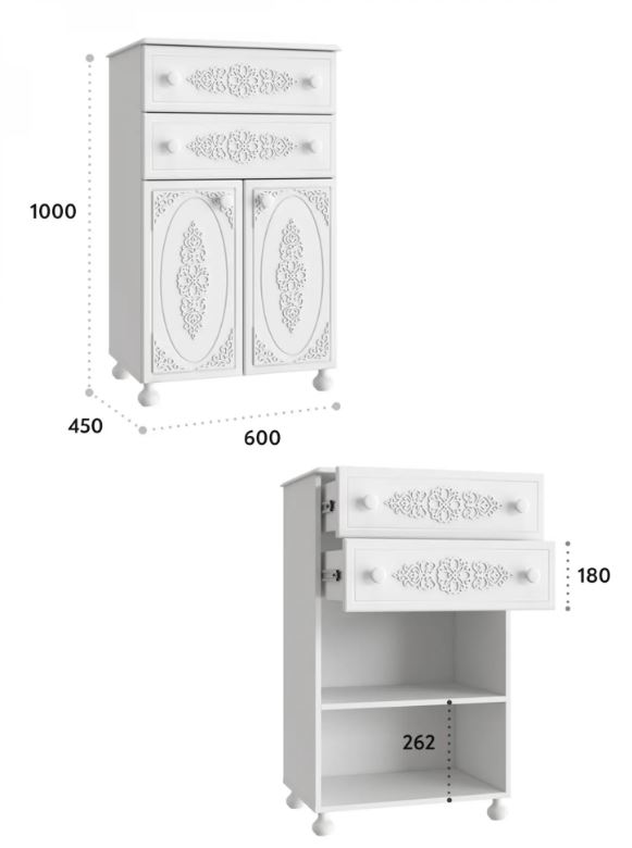 Ширина, мм 600 Глубина, мм 450 Высота, мм 1000 ?МатериалМатериал изготовленияЛДСП, МДФ Производитель Вариантов исполнения 1 -
