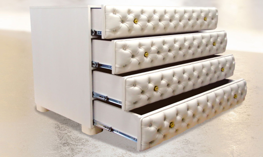 Комод Фетайдж станет незаменимым элементом для обустройства уютной спальной комнаты. Компактное изделие обладает необычайно вместительностью и способно заменить громоздкий шкаф. Четыре выдвижных ящика пригодятся для бережного и аккуратного хранения одежды и белья, косметики и всевозможных аксессуаров. Сверху на комоде отлично будут смотреться фотографии любимой семьи, ваза с цветами и различные декоративные украшения.