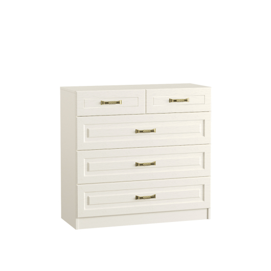 Комод Ливерпуль 10.103 прекрасно впишется в интерьер вашей комнаты, а также привнесет нотки элегантности. Теперь у вас появится дополнительное место для бережного хранения одежды, нижнего и постельного белья, разнообразных аксессуаров и любимой косметики. Комод оснащен пятью выдвижными ящиками. Сверху на комоде можно разместить несколько семейных фотографий, вазу с цветами, косметику и украшения.