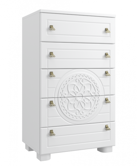 Комод Монблан МБ-35К не только прекрасно впишется в самую уютную комнату в вашем доме, но и станет настоящим украшением. Пять достаточно вместительных выдвижных ящика пригодится для размещения разнообразных аксессуаров, косметики и мелких предметов. Сверху на комоде вы сможете поставить вазу с красивыми цветами, несколько семейных фотографий и оригинальные статуэтки.