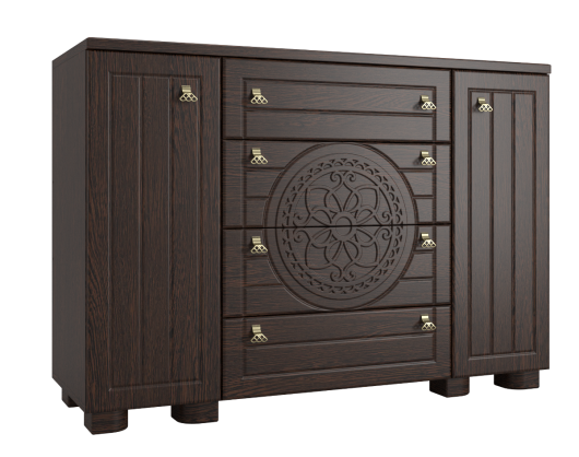 Комод Монблан МБ-36К не только прекрасно впишется в самую уютную комнату в вашем доме, но и станет настоящим украшением. Четыре достаточно вместительных выдвижных ящика и полки, скрытые за распашными дверьми, пригодится для размещения разнообразных аксессуаров, косметики и мелких предметов. Сверху на комоде вы сможете поставить вазу с красивыми цветами, несколько семейных фотографий и оригинальные статуэтки.