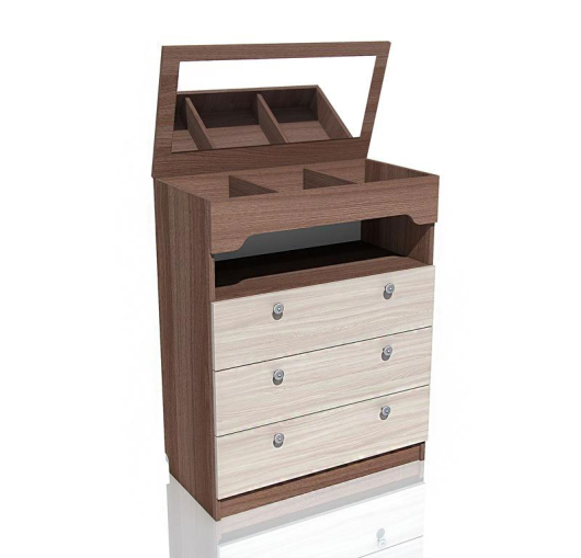 Комод с зеркалом Рива НМ 013.71-02 - стильная мебель для современной комнаты. Модуль модульной системы Браво. В комоде откидное зеркало - можно использовать как туалетный столик.