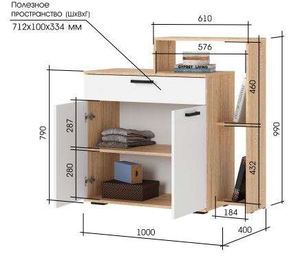 Ширина, мм 1000 Глубина, мм 400 Высота, мм 990 ?МатериалМатериал изготовленияЛДСП Производитель Вариантов исполнения 1 -