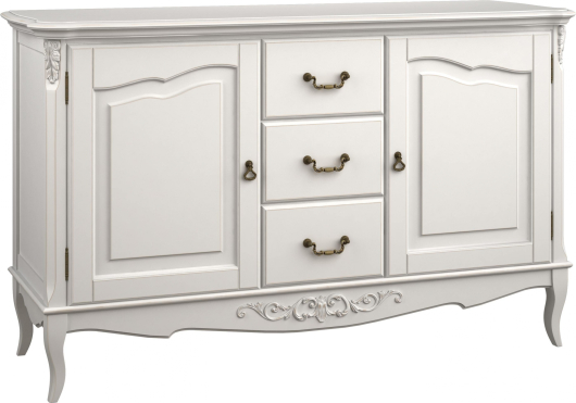 Комод широкий Прованс B403 послужит отличным дополнением общего интерьера вашей комнаты. За двумя распашными дверцами находится вместительное пространство с полками, созданными для аккуратного хранения одежды, белья, косметики и разнообразных аксессуаров. Три выдвижных ящика пригодятся для более мелких украшений и бижутерии. На комоде вы сможете разместить вазу с красивыми цветами, оригинальную статуэтку и несколько семейных фотографий.