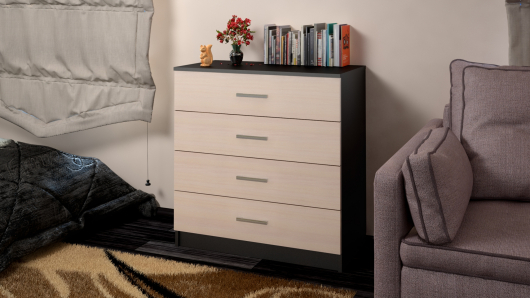 Комод выполнен в классическом стиле и идеально подойдет для любой комнаты. Комод состоит из четырех ящиков. Поверхность комода можно использовать для декора комнаты, либо других целей. -