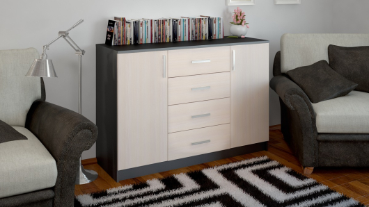 Комод выполнен в классическом стиле и идеально подойдет для любой комнаты. Комод состоит из четырех ящиков. Поверхность комода можно использовать для декора комнаты, либо других целей. -
