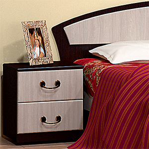 Тумба прикроватная незаменимый элемент мебели в спальне. На тумбе можно хранить очки, поставить стакан воды, будильник и другие необходимые вещи. Тумба имеет два выдвижных ящика. Красивое сочетание цветов и оригинальная фурнитура украсит интерьер вашей спальни.