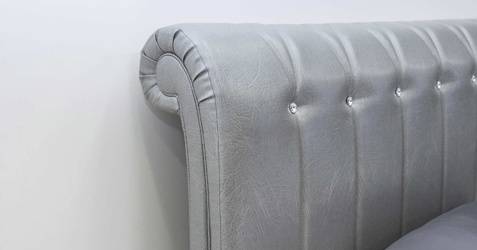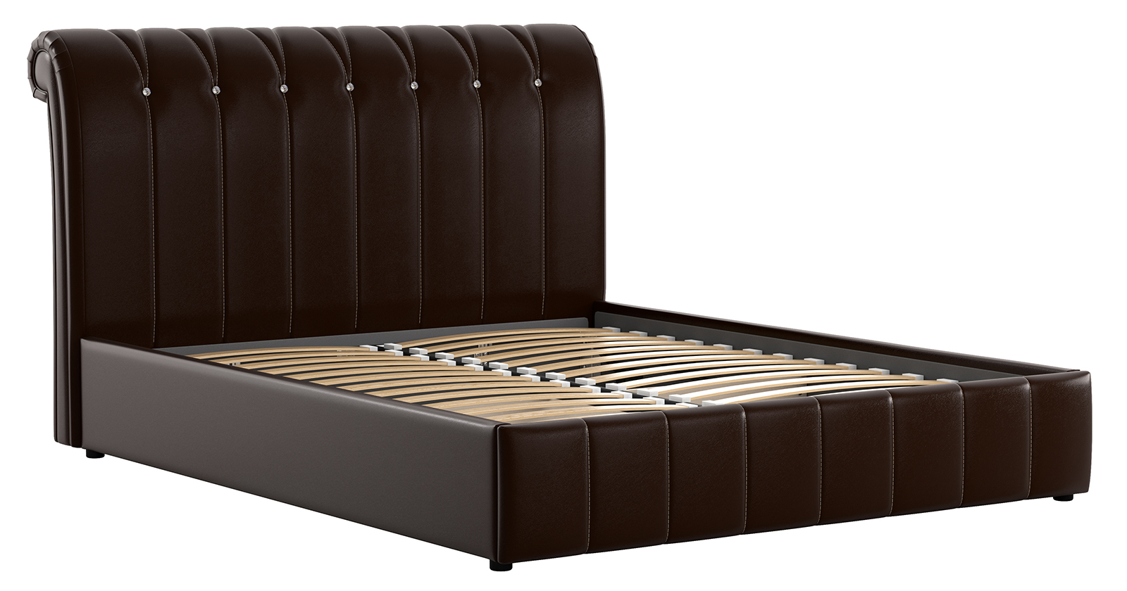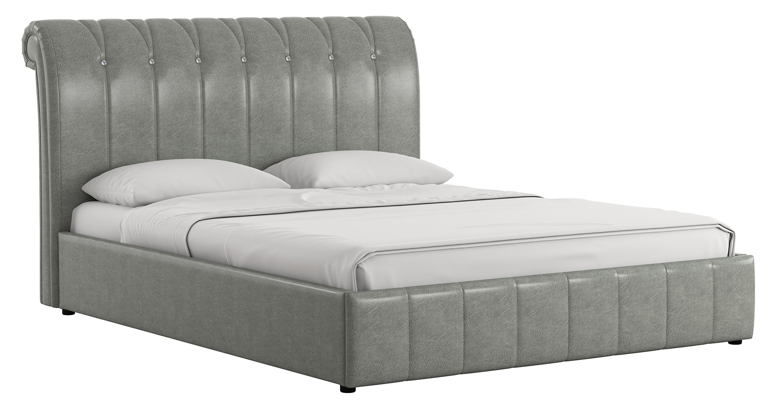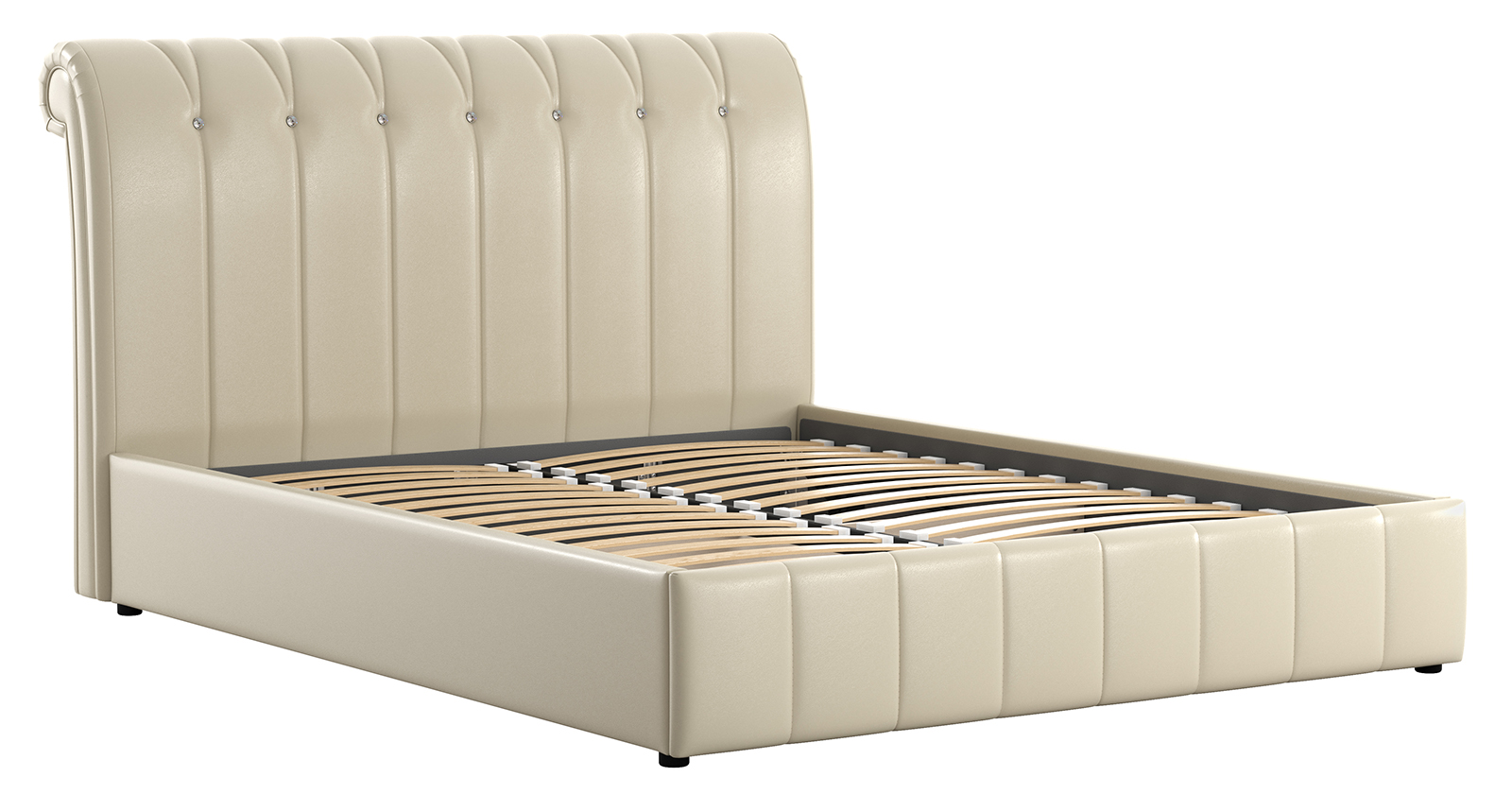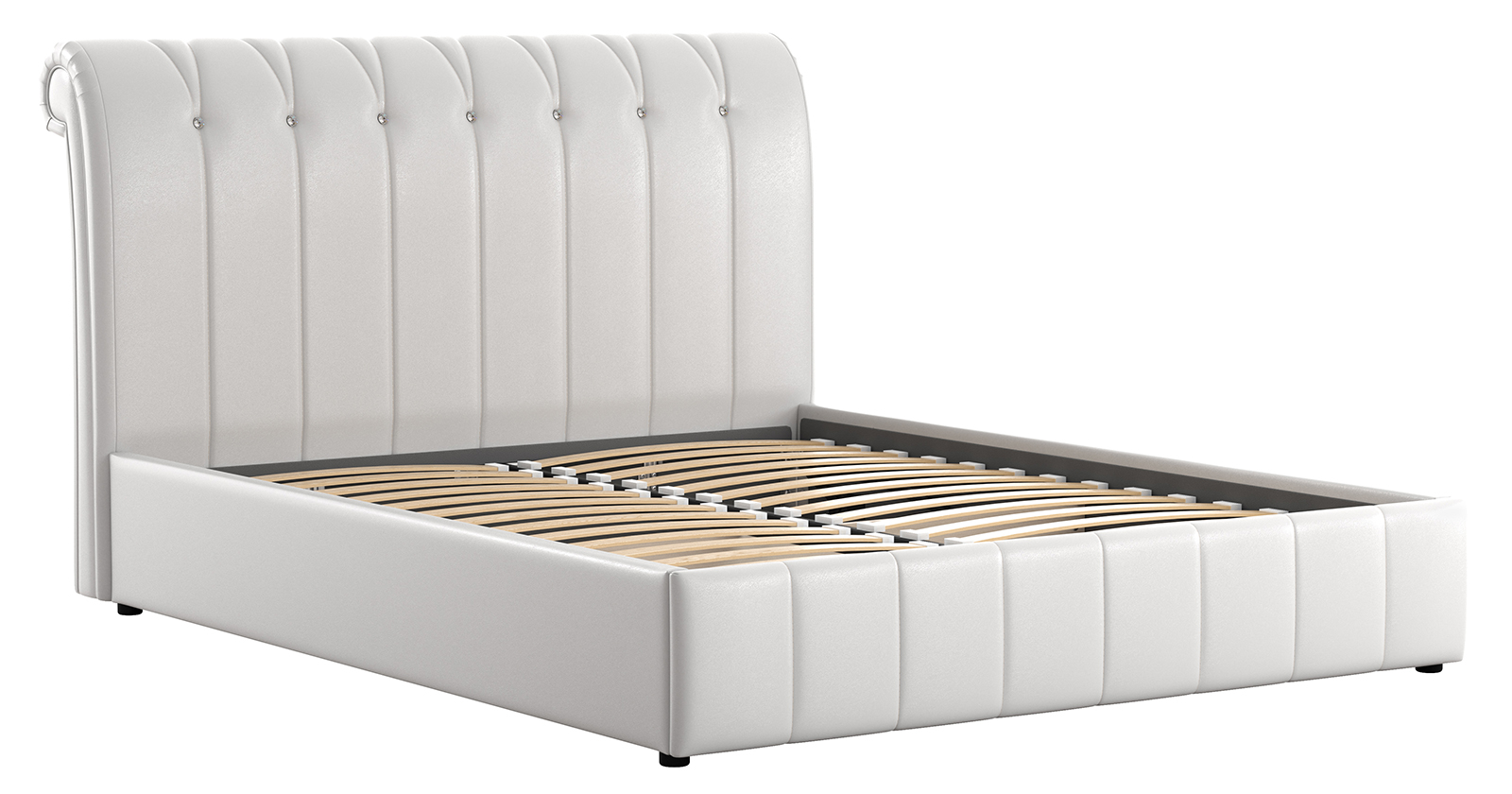 Кровать двойная Августа станет идеальным элементом для создания роскошного интерьера в спальной комнате. Не стоит забывать, что хорошая кровать поможет хорошо отдохнуть и набраться сил после трудных дней. Мягкая спинка предоставит возможность удобно облокотиться и насладиться интересным фильмом или прочитать любимую книгу перед сном. Игра и блеск страз на фигурном изголовье гармонирует с глянцевой, с легким тиснением искусственной кожей обивки.