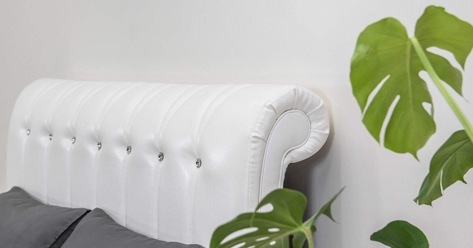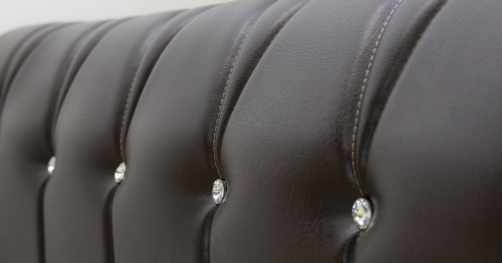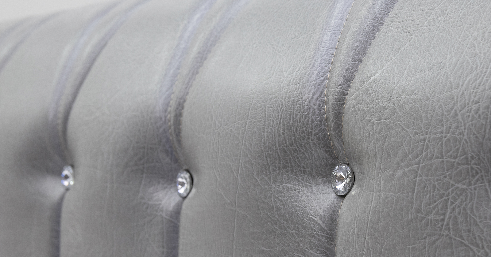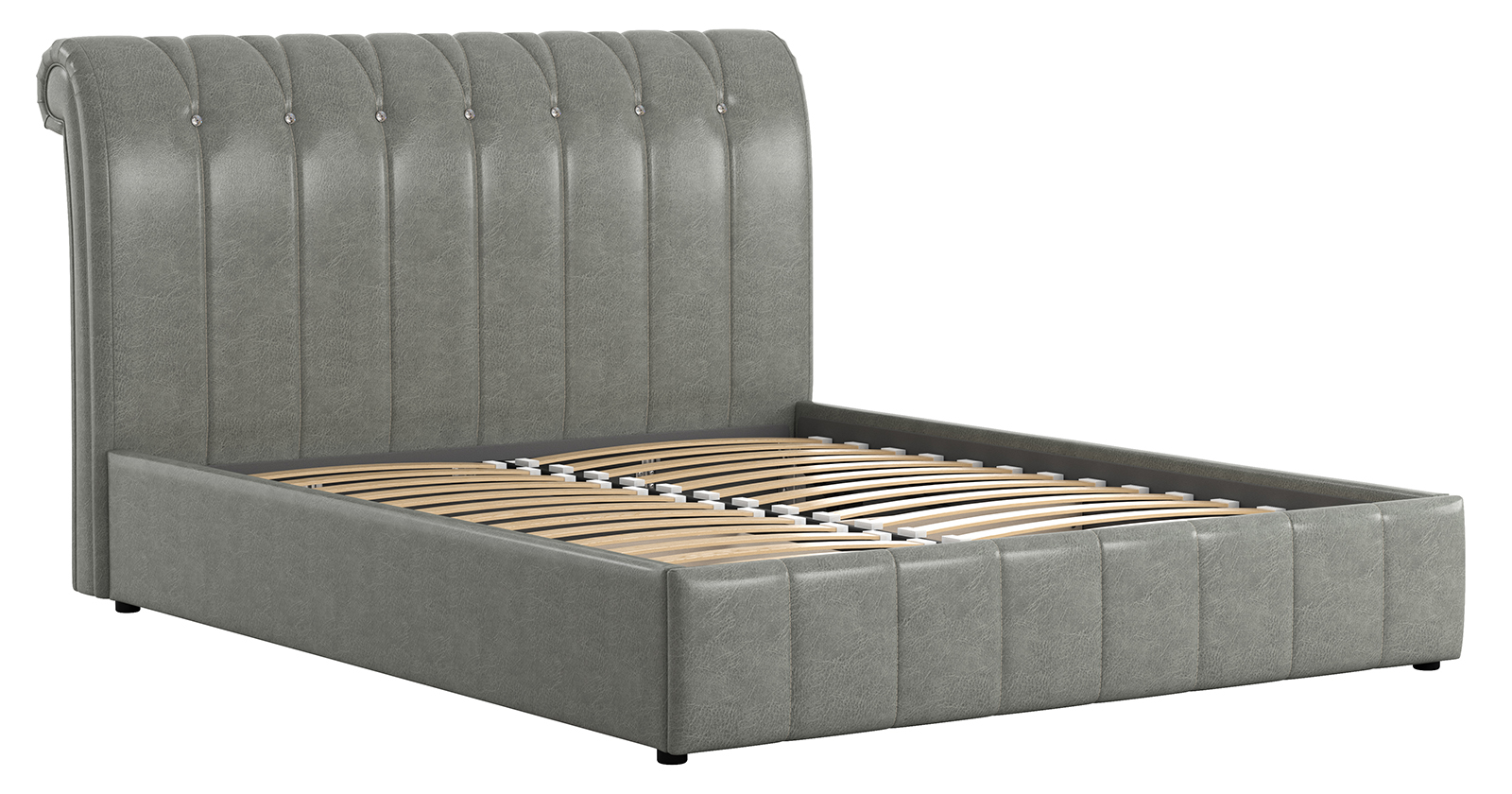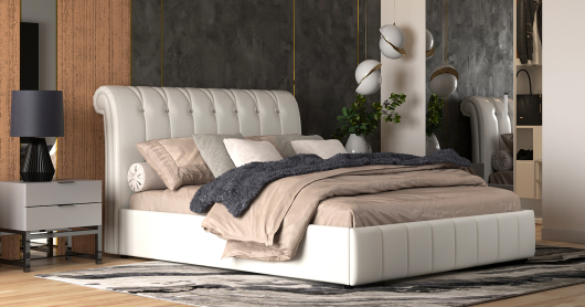Кровать двойная Августа станет идеальным элементом для создания роскошного интерьера в спальной комнате. Не стоит забывать, что хорошая кровать поможет хорошо отдохнуть и набраться сил после трудных дней. Мягкая спинка предоставит возможность удобно облокотиться и насладиться интересным фильмом или прочитать любимую книгу перед сном. Игра и блеск страз на фигурном изголовье гармонирует с глянцевой, с легким тиснением искусственной кожей обивки.
