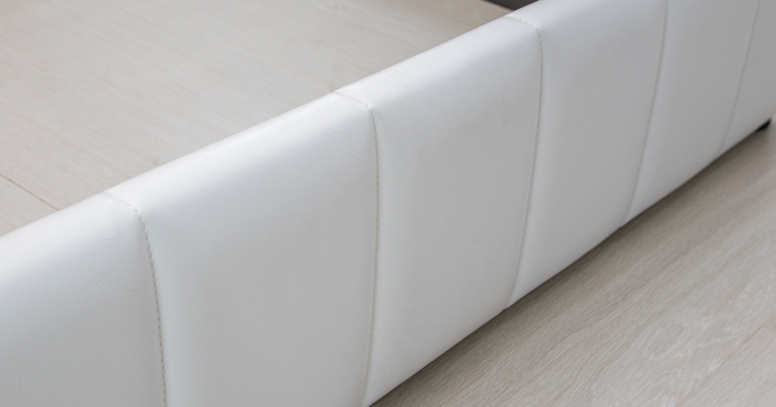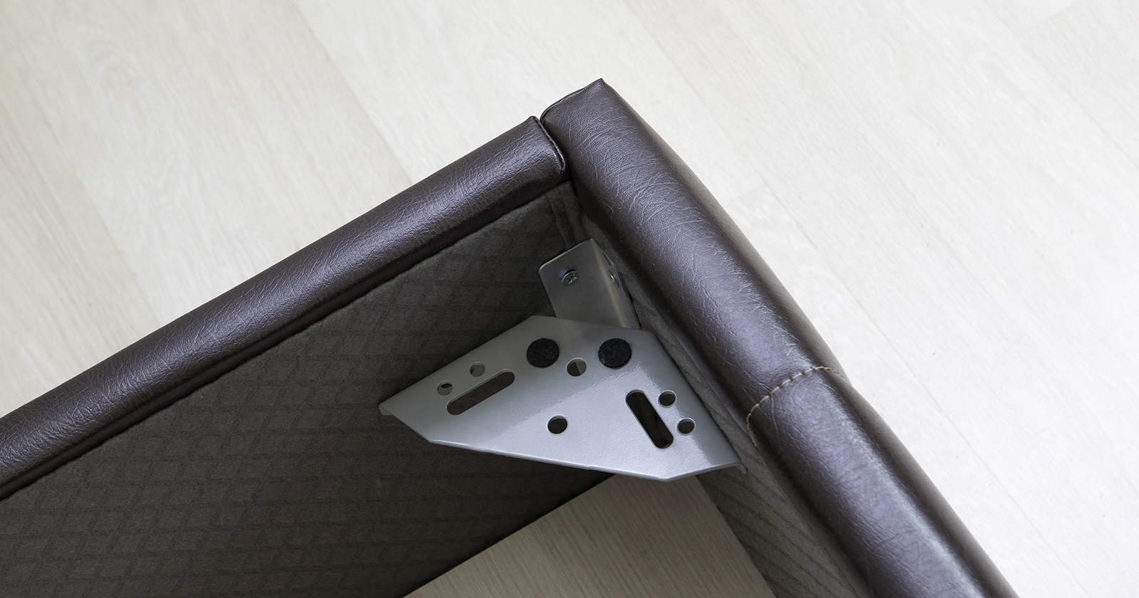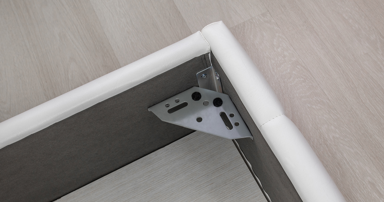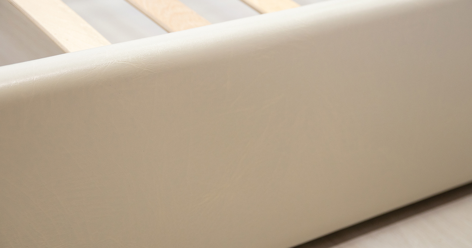 Основание кровати укомплектовано матрасодержателями. Жесткое кроватное дно из ЛДСП 16 мм. Задняя стенка изголовья выполнена в тех. ткани (спанбонд).