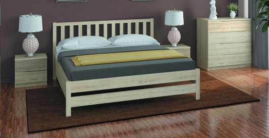 Кровать Массив Боровичи изготовлена из натурального дерева. Спинка изготовлена рейками, что придаёт модели лёгкость и воздушность.