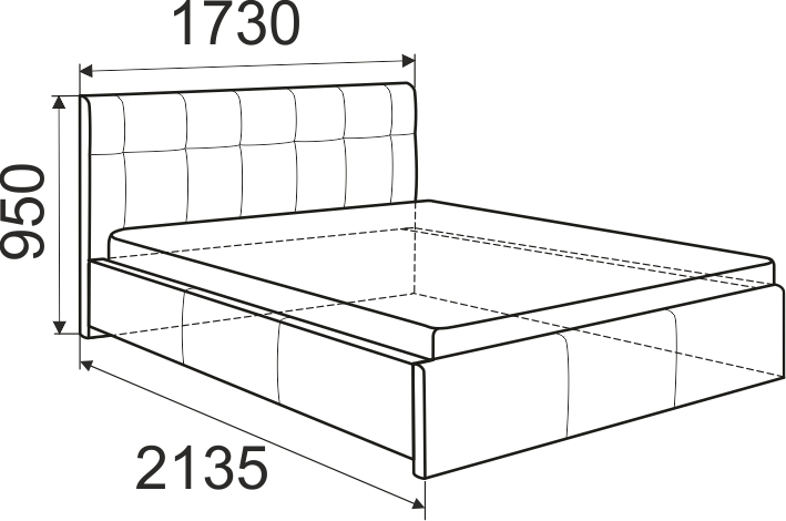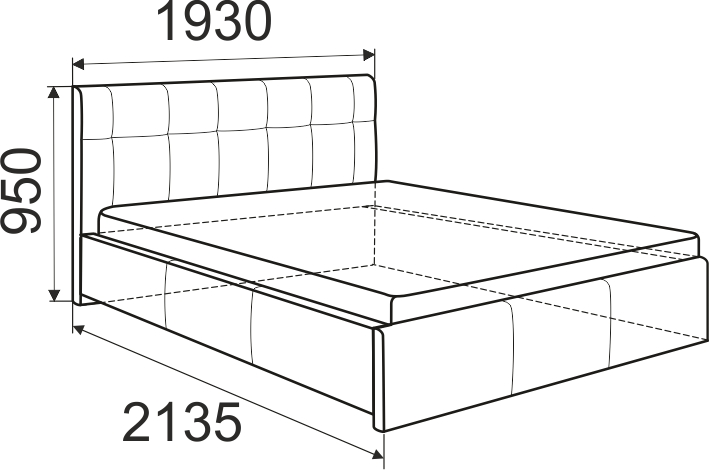 Размеры: Ш1530/1730/1930 x Ж2135 x В950 мм.