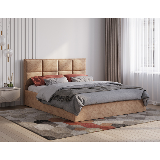 Размеры: Ш1732 х Д2115 х В1100 мм, спальное место 1600х2000 мм Материал: ЛДСП, обивка велюр Кровать Линда дизайнерская модель с современным дизайном. Спинка выполнена со стёжкой крупные квадраты. Стильное цветовое решение станет изюминкой вашей спальни.