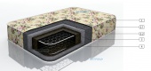 - Пружинный блок: Зависимый пружинный блок «боннель» (112 пружин на м2), который усилен металлической рамкой по периметру.